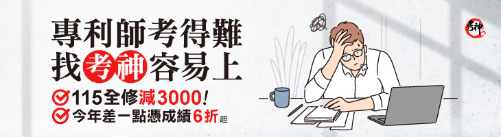 專利師放榜優惠,115全修減3000,差分優6折起!
