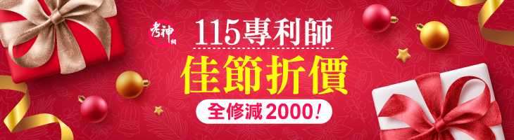 115專利師正課減2000!預購試題精選減1000!