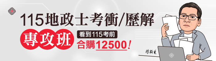 | 【專攻班】115地政士(考衝+歷解) 收看到115/6/10 | 15600 | 12500 | ![]() |