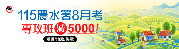 農田水利署預計115第三季招考!專攻班特價減5000!組合&單科課程減2000!
