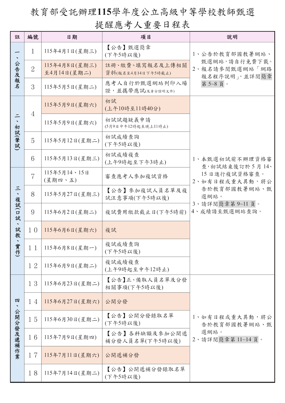 教育部受託辦理115學年度公立高級中等學校教師甄選簡章
